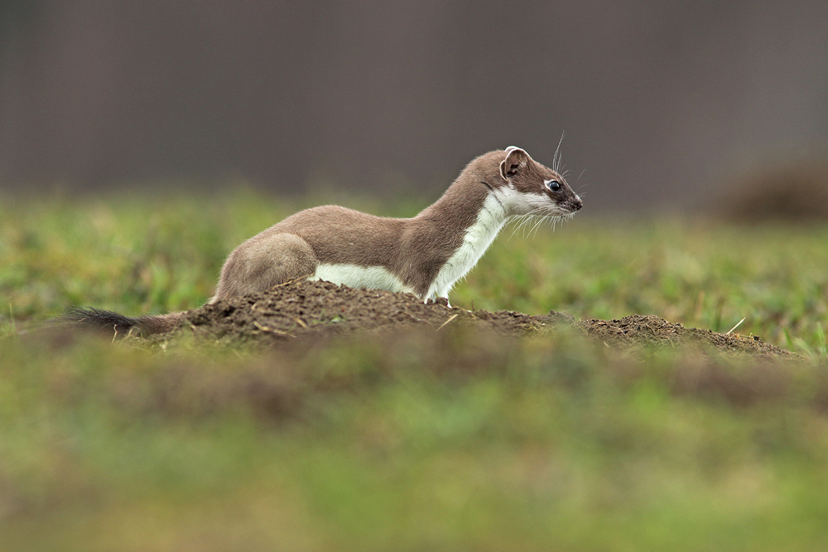 Les jours passent et l’hermine fréquente toujours le même pré. La neige a fondu et le soleil a mis à nu les innombrables galeries et taupinières de campagnols qui habitent le sol. Je comprends pourquoi l’hermine posé ses valises ici !
