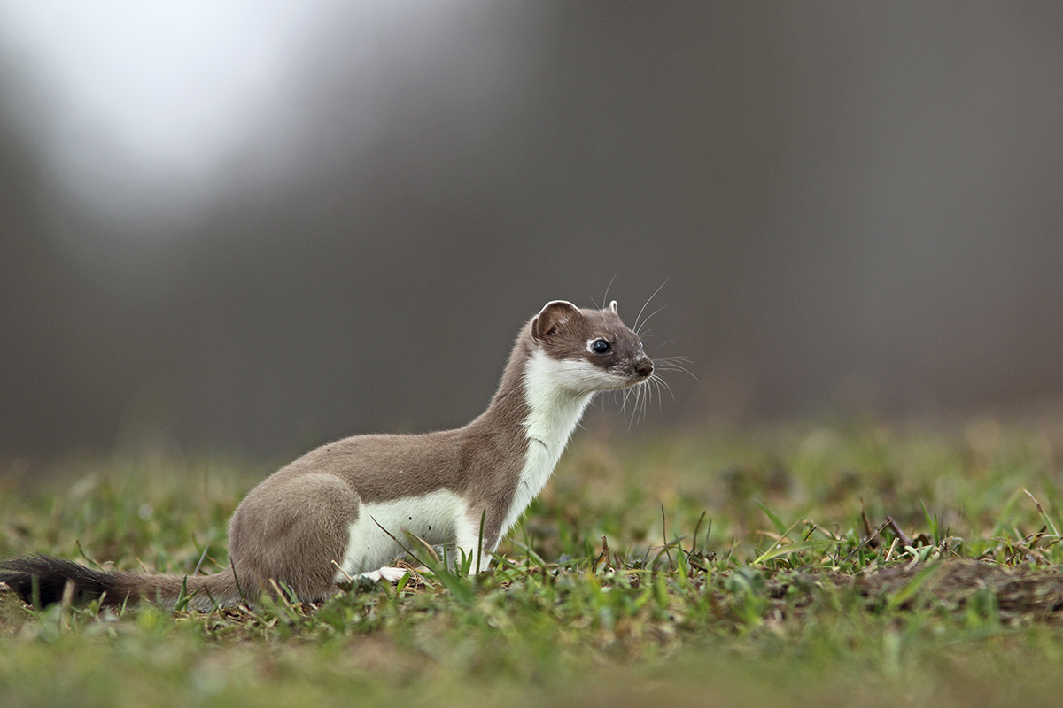 Bien sûr, je n’ai pas pu résister à l’envie de rendre visite à « ma » petite hermine qui est désormais en pleine mue printanière. Ce matin-là lorsque j’arrive, elle s’entraine sur les pistes de ski !
