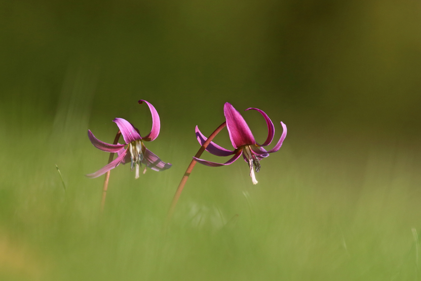 Celle-là, ça fait un petit moment que je voulais la voir. Du genre quelques années ! Je l’ai cherché dans le Jura sans jamais la trouver. Et là, voilà qu’elle fait la belle sur les crêtes du Sud Vercors, caressée par le soleil qui retombe. Par endroits, les prairies sont carrément ponctuées de mauve ! Magnifiques ces Erythérones dents de chiens ! Mais au fait, pourquoi "dents de chien" ? A cause de la forme de leur bulble blanc qui rappelle une dent de chien. C’est pas moi qui le dit, c’est mon bouquin !
