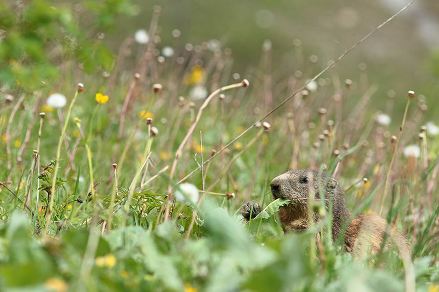 La marmotte ingurgite 400 grammes de nourriture par jour soit au total, 70 kg pendant ses 6 mois d’activité. Cette boulimie lui permet de constituer des réserves de graisse, indispensables si elle veut survivre à l’hiver !