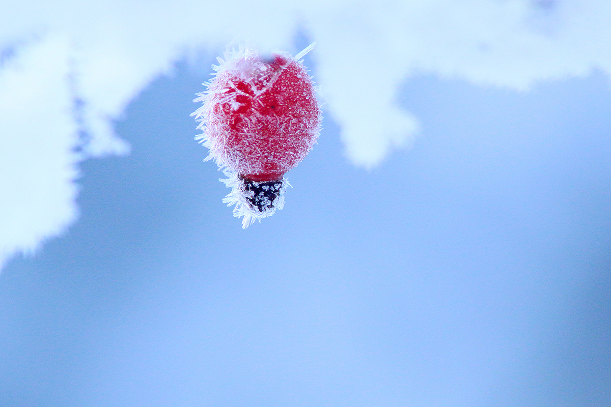 Le long du chemin, les cynorrhodons givrés accueillent les premiers randonneurs en raquettes. Les oreilles rougissent, le pantalon durcit. Pas de doute, l’hiver est dans nos pas !