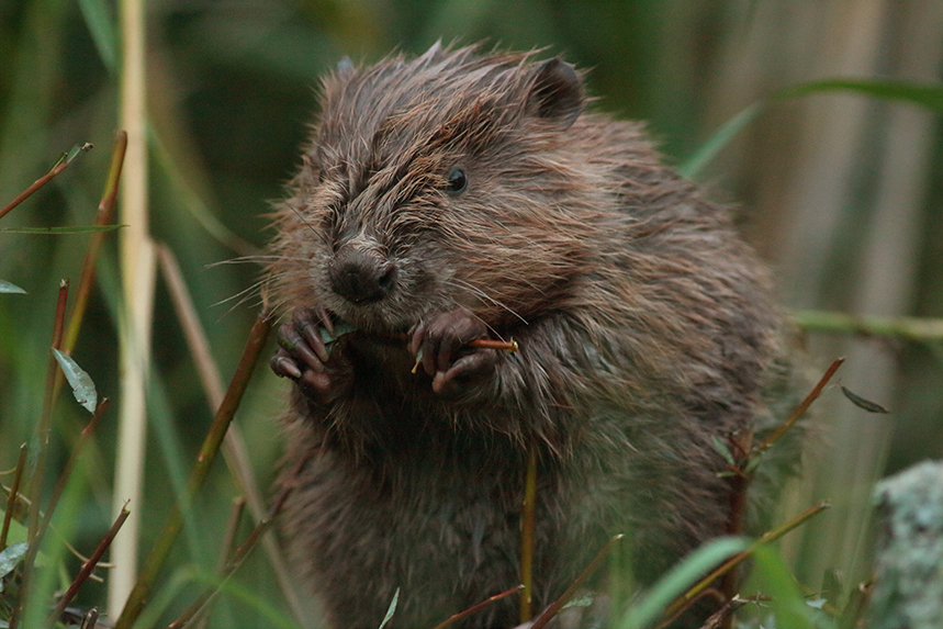 Et rebelotte ! Les jeunes pousses sont découpées en un coup d’incisives et écorcées minutieusement jusqu’à la dernière miette. Pour l’ancdote, le castor est même tombé du tronc en tentant d’atteindre des rameaux décidément trop loin ! J’en ai ri sous mon affût !