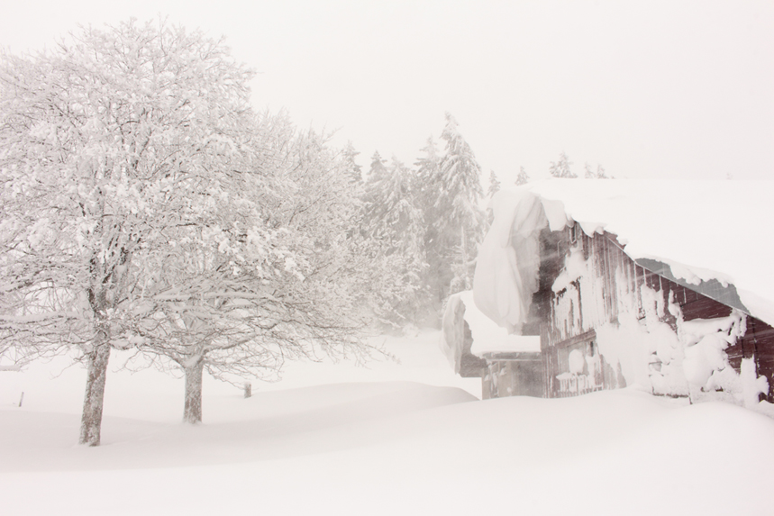 Il neige depuis 3 jours. Le Jura a enfin endossé ses habits d’hiver. A deux pas du Haut-Doubs, les Franches Montagnes ont retrouvé leur franchise. Plus un brin d’herbe, à peine quelques gentianes séchées qui pointent par-dessus le manteau.