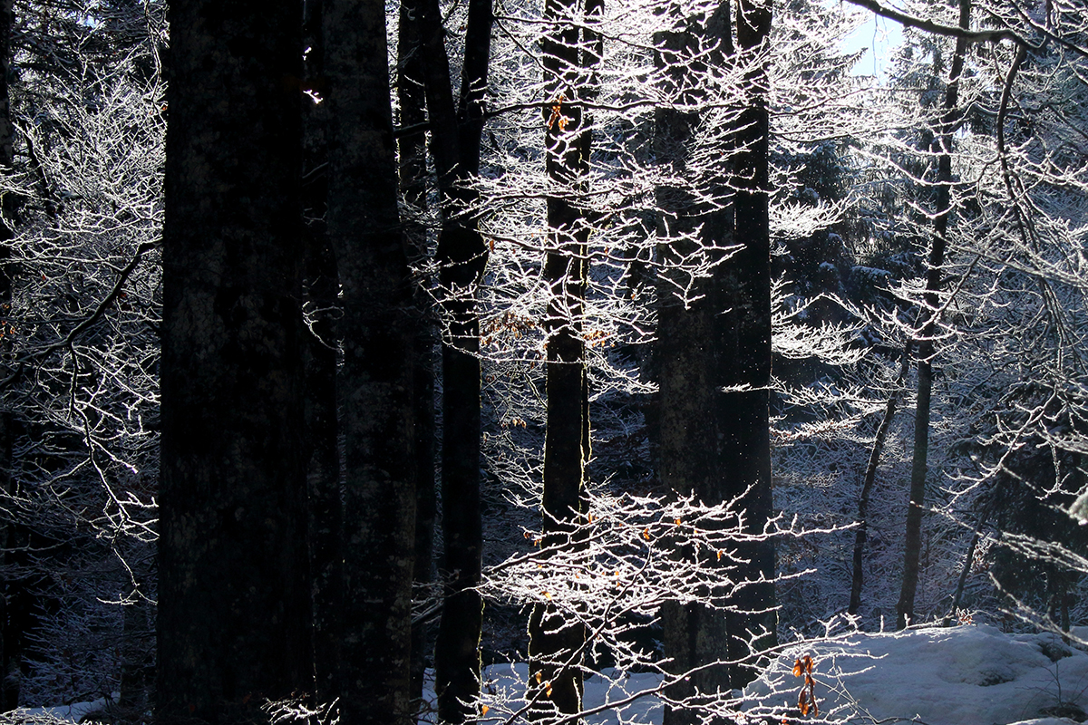 Une petite poudrée de neige fraiche, de francs rayons de soleil, et voilà le sous-bois qui se prend pour un écrin de joaillerie.
