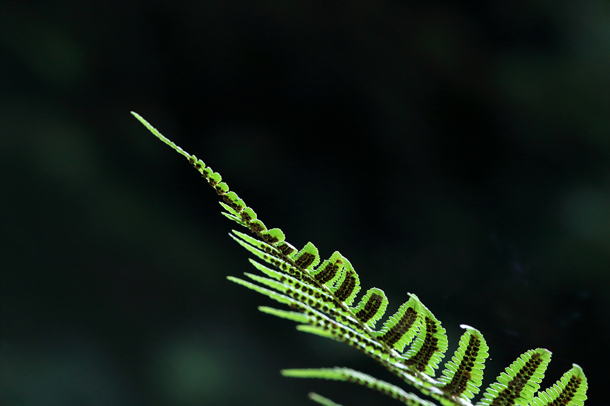 les bouquets de fougères tapissent certains sous-bois de leurs nuances verts finement découpées.