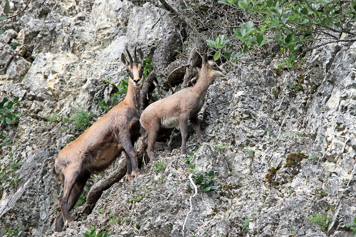 En falaise, les chamois s’amusent, se coursent, semblent prendre du bon temps.